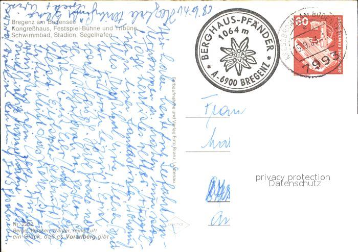 72597635 alte Postkarte Bregenz Vorarlberg Fliegeraufnahme Kongresshaus und Festspielbuehne postalisch gelaufen Erhaltung siehe scans [LiesaD40] KatCode: 11390342080207