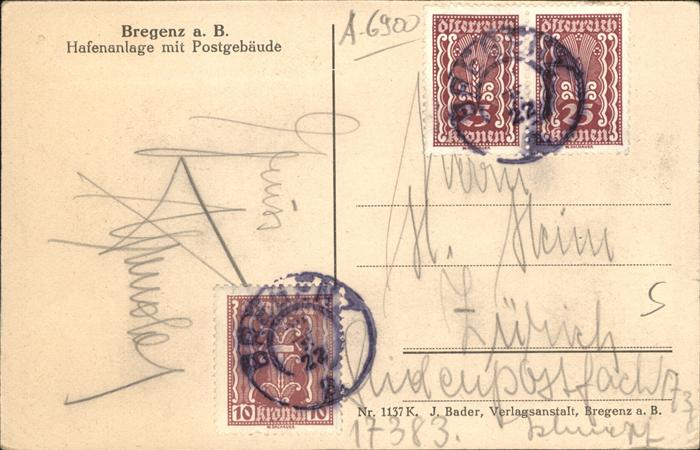 11110277 Bregenz Vorarlberg Hafenanlage Posrgebäude KatCode 11390342080207
