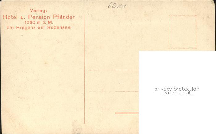 71540804 Bregenz Vorarlberg Hotel Pension Pfaender Alpenpanorama Berggasthof postalisch nicht gelaufen Erhaltung siehe scans KatCode: 11390342080207