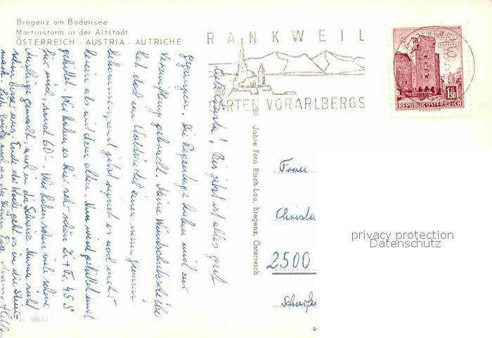 72624556 alte Postkarte Bregenz Vorarlberg Martinsturm in der Altstadt postalisch gelaufen Erhaltung siehe scans [WerneD78] KatCode: 11390342080207