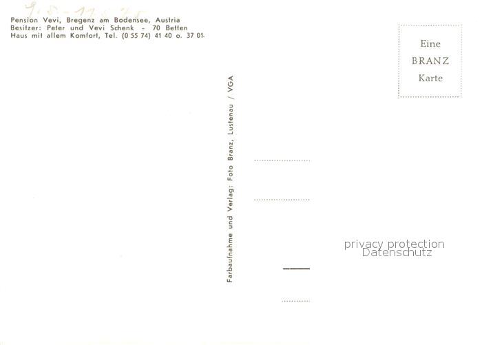 73641494 Bregenz Vorarlberg Pension Vevi postalisch nicht gelaufen Erhaltung siehe scans [FriedD77] KatCode: 11390342080207