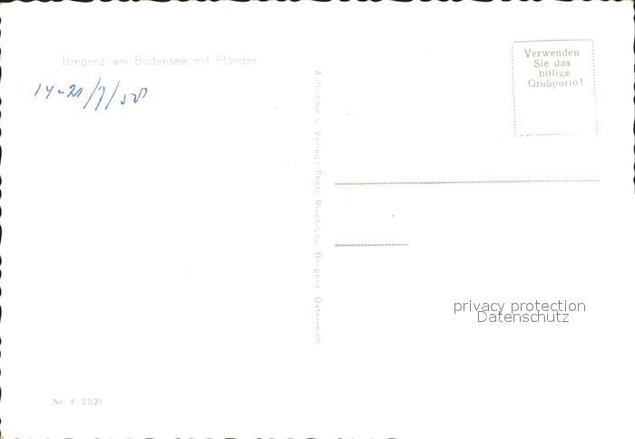 71937849 Bregenz Vorarlberg Pfaender postalisch nicht gelaufen Erhaltung siehe scans KatCode: 11390342080207
