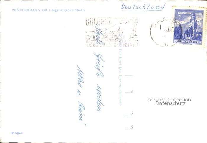 72499789 alte Postkarte Bregenz Vorarlberg Pfaenderbahn postalisch gelaufen Erhaltung siehe scans KatCode: 11390342080207
