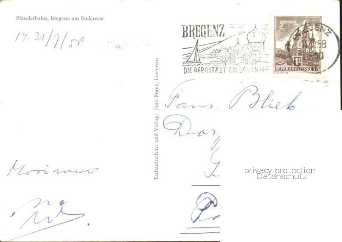 71937848 alte Postkarte Bregenz Vorarlberg Pfaenderbahn postalisch gelaufen Erhaltung siehe scans KatCode: 11390342080207
