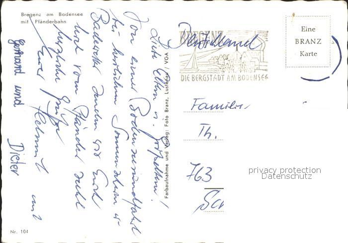 71899484 alte Postkarte Bregenz Vorarlberg Pfaenderbahn Bergbahn Panorama Bodensee postalisch gelaufen KatCode: 11390342080207