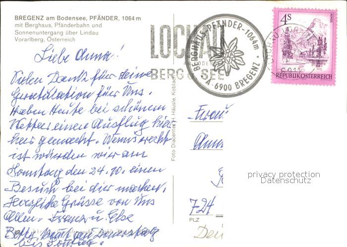 72499722 alte Postkarte Bregenz Vorarlberg Pfaenderbahn Berghaus Sonnenuntergang postalisch gelaufen Erhaltung siehe scans KatCode: 11390342080207