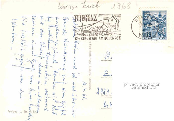 72898928 alte Postkarte Bregenz Vorarlberg Pfaenderbahn Bergstation Fliegeraufnahme postalisch gelaufen Erhaltung siehe scans [FriedD77] KatCode: 11390342080207