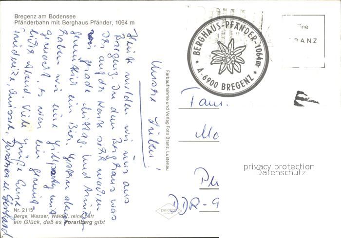 72224026 alte Postkarte Bregenz Vorarlberg Pfaenderbahn mit Berghaus Pfaender postalisch gelaufen Erhaltung siehe scans KatCode: 11390342080207