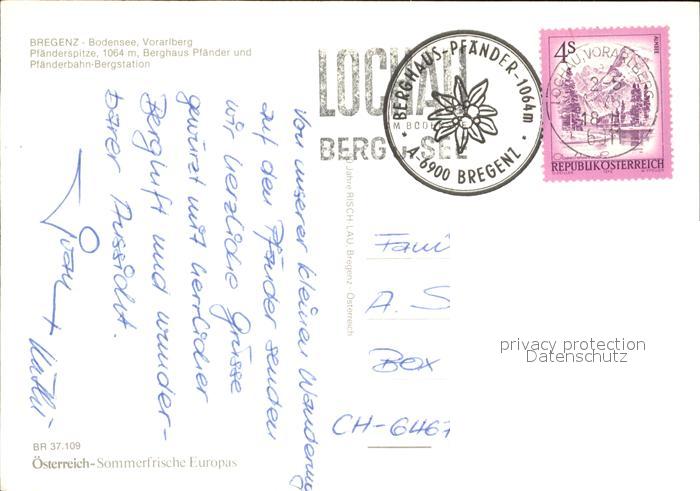 72532415 alte Postkarte Bregenz Vorarlberg Pfaenderspitze mit Berghaus und Bergstation postalisch gelaufen Erhaltung siehe scans [AndreD76 kt113box] KatCode: 11390342080207