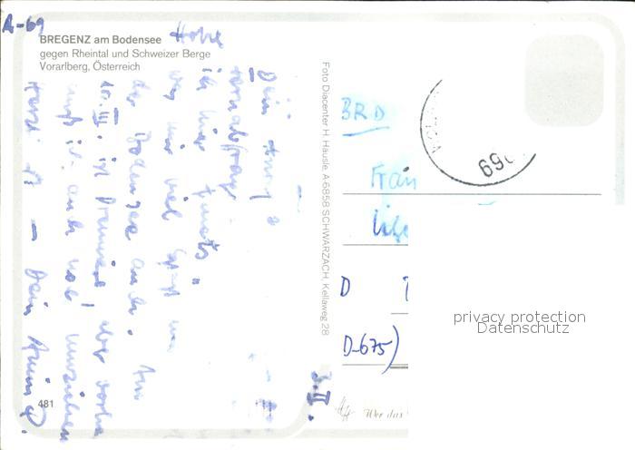 72504900 alte Postkarte Bregenz Vorarlberg Rheintal Schweizer Berge postalisch gelaufen Erhaltung siehe scans KatCode: 11390342080207
