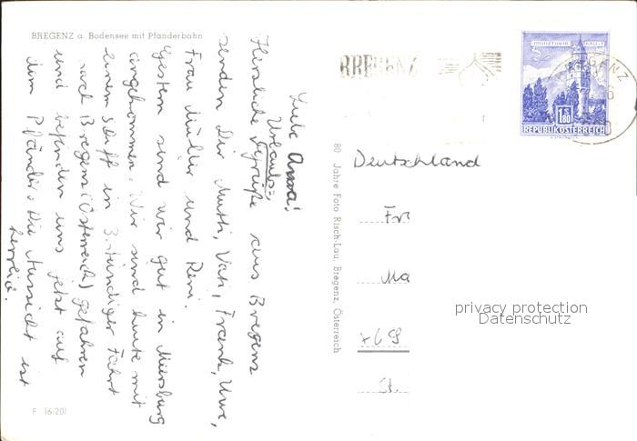 72392595 alte Postkarte Bregenz Vorarlberg Seilbahn postalisch gelaufen Erhaltung siehe scans KatCode: 11390342080207