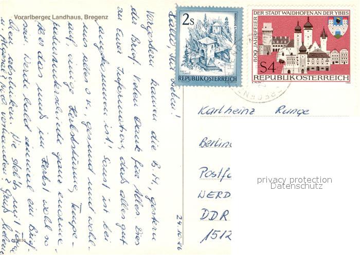 73577694 alte Postkarte Bregenz Vorarlberg Vorarlberger Landhaus postalisch gelaufen Erhaltung siehe scans [FriedD77] KatCode: 11390342080207