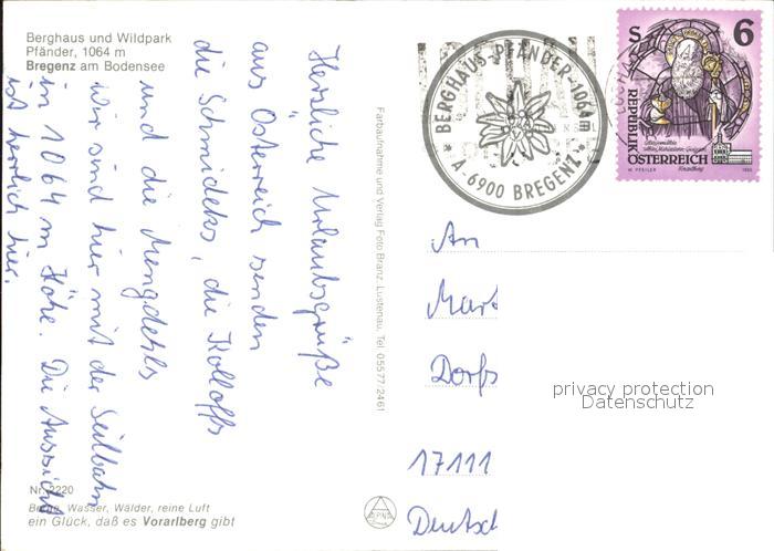 72439001 alte Postkarte Bregenz Vorarlberg Wildpark Berghaus Pfaender postalisch gelaufen Erhaltung siehe scans KatCode: 11390342080207