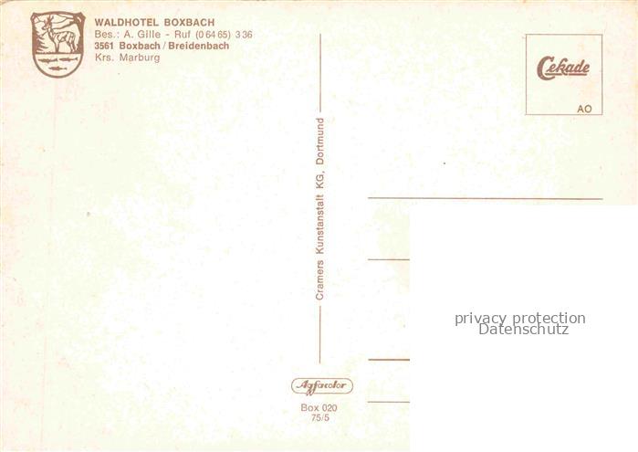 74036797 Breidenbach Biedenkopf Café Restaurant Waldhotel Boxbach Landschaftspanorama Viehweide Ponys postalisch nicht gelaufen Erhaltung siehe scans [FriedD77] KatCode: 11110006534005