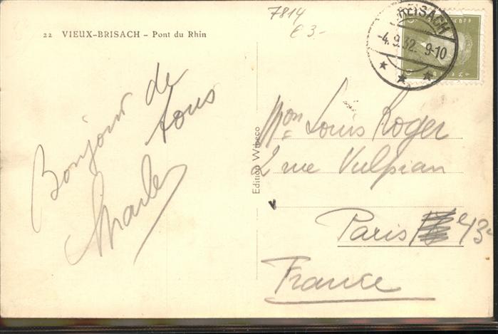71444041 alte Postkarte Breisach Rhein Blick von Frankreich aus postalisch gelaufen Erhaltung siehe scans KatCode: 11110008315015
