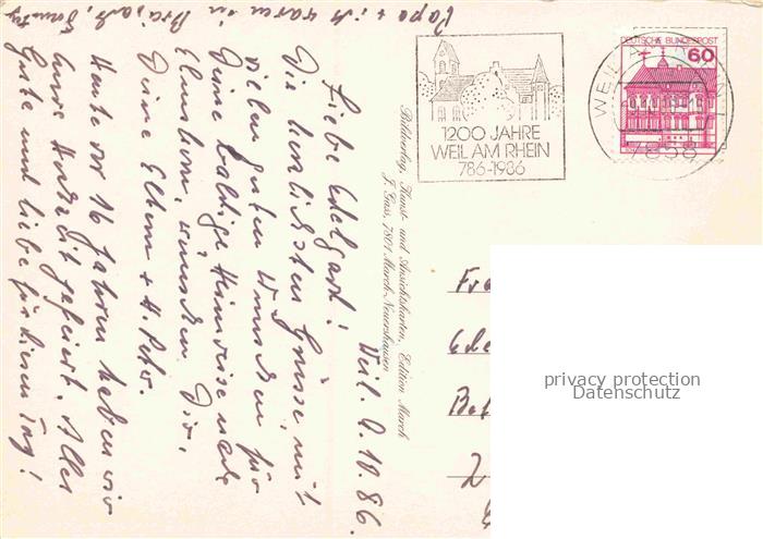 74153749 alte Postkarte Breisach Rhein BW Blick zum Muenster Europabrunnen Hochaltar mit Stephansmuenster postalisch gelaufen Erhaltung siehe scans [FriedD77] KatCode: 11110008315015
