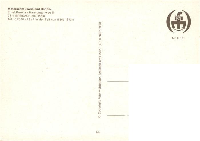 73929981 Breisach Rhein Fahrgastschiff Weinland Baden Stephansmuenster postalisch nicht gelaufen Erhaltung siehe scans [FriedD77] KatCode: 11110008315015