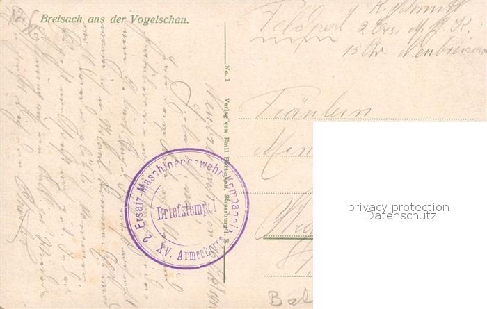43495273 alte Postkarte Breisach Rhein Fliegeraufnahme postalisch gelaufen Feldpost – Stempel Erhaltung siehe scans [KathaD81] KatCode: 11110008315015
