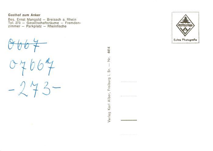 73878692 Breisach Rhein Gasthof zum Anker Restaurant Stadtpanorama mit Muenster postalisch nicht gelaufen Erhaltung siehe scans [FriedD77] KatCode: 11110008315015