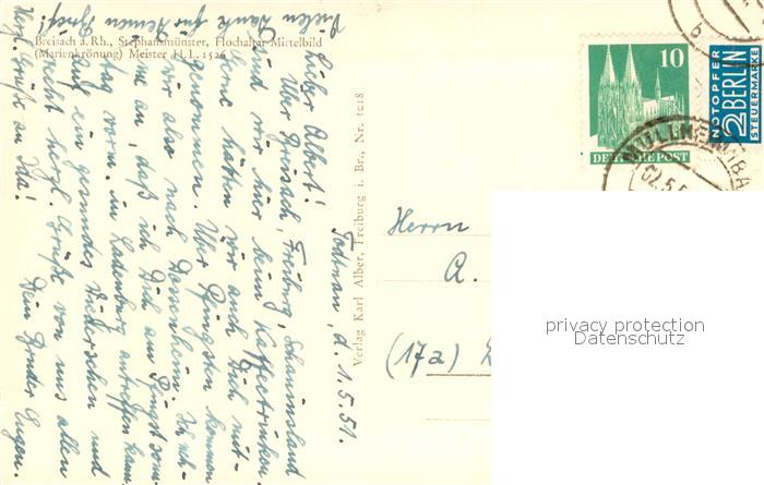 73623074 alte Postkarte Breisach Rhein Hochaltar Mittelbild im Stephansmuenster postalisch gelaufen Erhaltung siehe scans [WerneD78] KatCode: 11110008315015