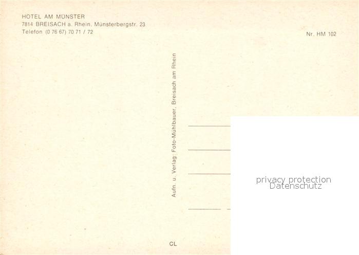 73748109 Breisach Rhein Hotel am Muenster postalisch nicht gelaufen Erhaltung siehe scans [WerneD78] KatCode: 11110008315015