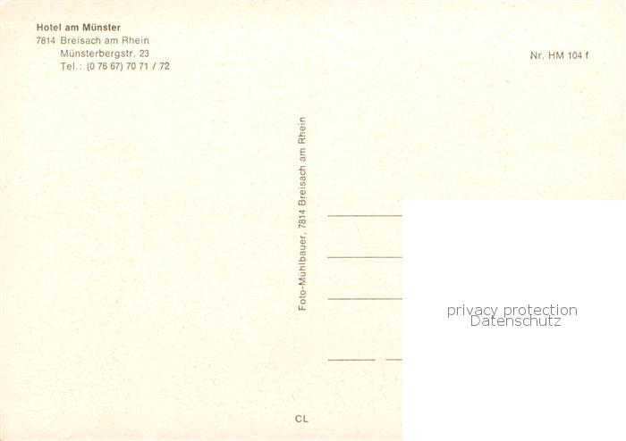 73829658 Breisach Rhein Hotel am Muenster Panorama postalisch nicht gelaufen Erhaltung siehe scans [FriedD77] KatCode: 11110008315015