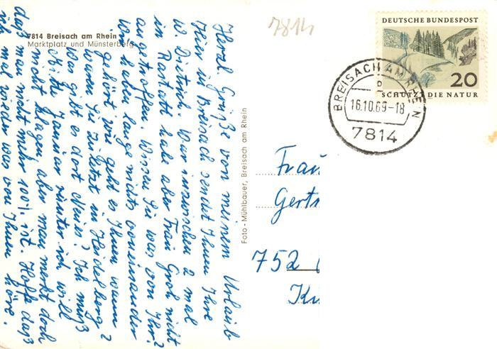 73934798 alte Postkarte Breisach Rhein Marktplatz Muensterberg mit St Stephansmuenster postalisch gelaufen Erhaltung siehe scans [WerneD78] KatCode: 11110008315015