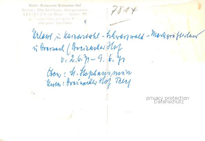 73749583 Breisach Rhein Muenster Hotel Restaurant Breisacher Hof postalisch nicht gelaufen Erhaltung siehe scans [WerneD78] KatCode: 11110008315015