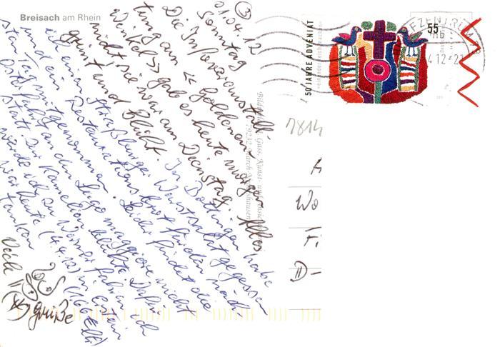 73930043 alte Postkarte Breisach Rhein Partie am Rhein Blick zum St. Stephansmuenster Brunnen postalisch gelaufen Erhaltung siehe scans [FriedD77] KatCode: 11110008315015