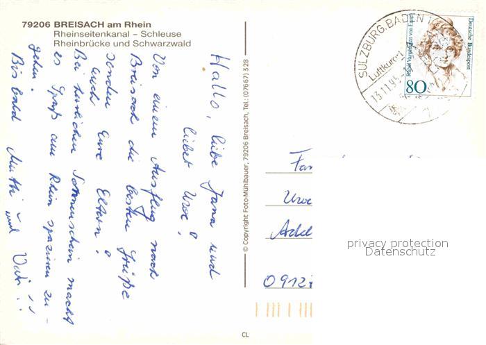 72617306 alte Postkarte Breisach Rhein Rheinseitenkanal Schleuse Rheinbruecke Schwarzwald postalisch gelaufen Erhaltung siehe scans [WerneD78] KatCode: 11110008315015