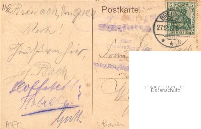 43510797 alte Postkarte Breisach Rhein Rheinufer Schiffsbruecke Blick zum Muenster postalisch gelaufen Erhaltung siehe scans [FriedD77] KatCode: 11110008315015
