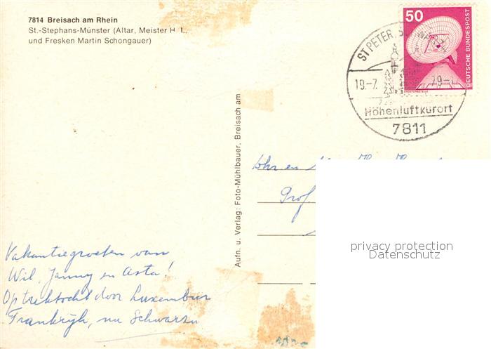 72935693 alte Postkarte Breisach Rhein St Stephans Muenster postalisch gelaufen Erhaltung siehe scans [FriedD77] KatCode: 11110008315015