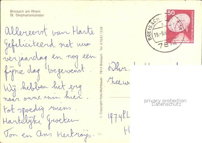 72255277 alte Postkarte Breisach Rhein St. Stephansmuenster postalisch gelaufen Erhaltung siehe scans KatCode: 11110008315015