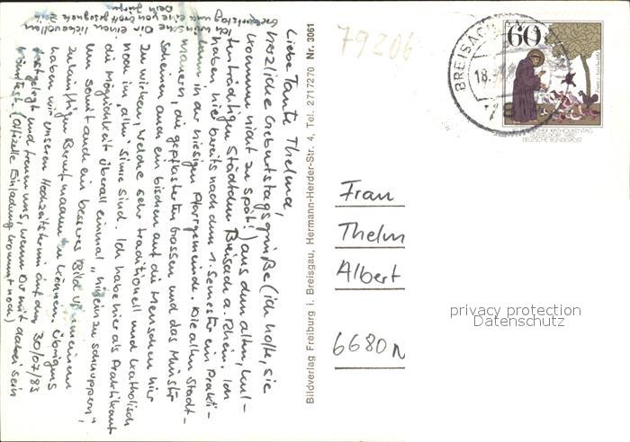 72097364 alte Postkarte Breisach Rhein Stadtblick St Stephansmuenster Turm Strassenpartie postalisch gelaufen Erhaltung siehe scans KatCode: 11110008315015