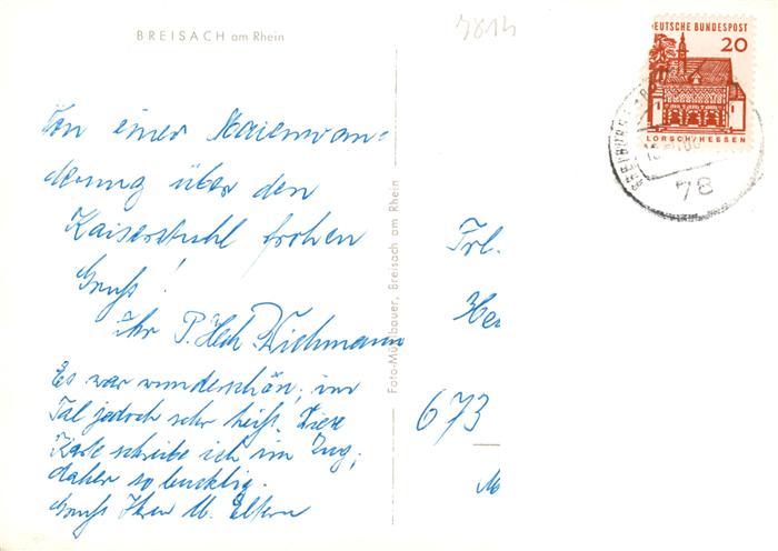 73930036 alte Postkarte Breisach Rhein Stadtpanorama Blick zum St. Stephansmuenster Hochaltar postalisch gelaufen Erhaltung siehe scans [FriedD77] KatCode: 11110008315015