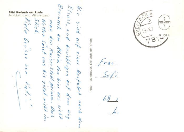 73930033 alte Postkarte Breisach Rhein Stadtpanorama Marktplatz und Muensterberg postalisch gelaufen Erhaltung siehe scans [FriedD77] KatCode: 11110008315015