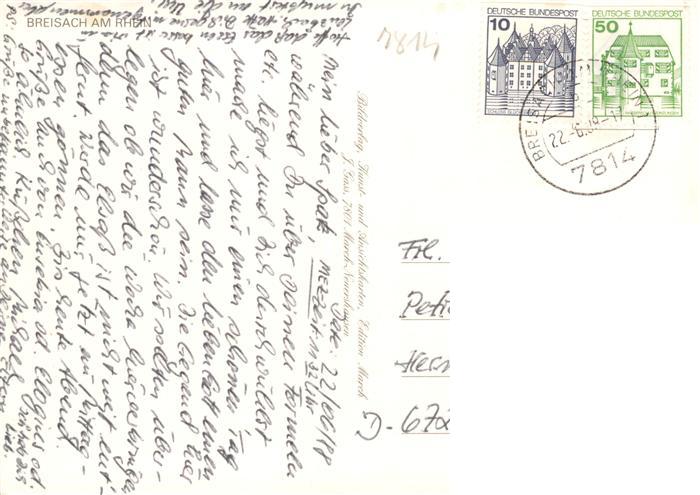 73930040 alte Postkarte Breisach Rhein Uferpartie am Rhein Blick zum St. Stephansmuenster postalisch gelaufen Erhaltung siehe scans [FriedD77] KatCode: 11110008315015