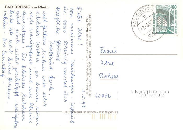 73233431 alte Postkarte Breisig Bad Fachwerk Panorama postalisch gelaufen Erhaltung siehe scans [KathaD81] KatCode: 11110007131006
