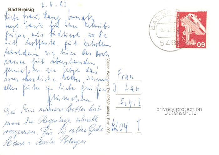 73233427 alte Postkarte Breisig Bad Kirche Kurpark Fontainen postalisch gelaufen Erhaltung siehe scans [KathaD81] KatCode: 11110007131006