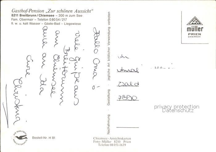 72439807 Breitbrunn Chiemsee Gasthof Obermair Hafenpartie Schloss Kirche postalisch nicht gelaufen Erhaltung siehe scans KatCode: 11110009187121