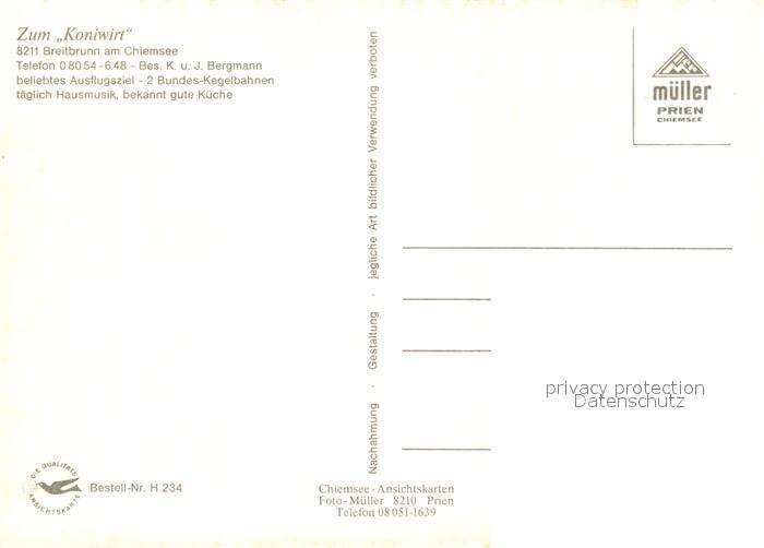 73081860 Breitbrunn Chiemsee Restaurant zum Koniwirt postalisch nicht gelaufen Erhaltung siehe scans [LiesaD40] KatCode: 11110009187121
