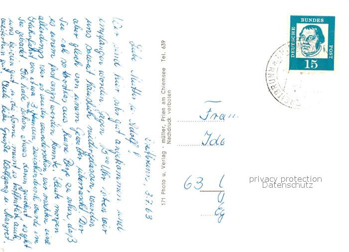 73272357 alte Postkarte Breitbrunn Chiemsee Zeltplatz Kampenwand Dorfkirche Strandbad postalisch gelaufen Erhaltung siehe scans [KathaD81] KatCode: 11110009187121