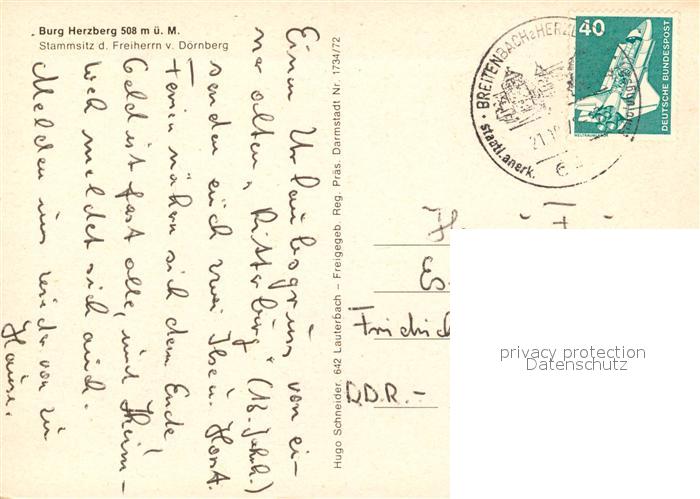 73088658 alte Postkarte Breitenbach Herzberg Burg Herzberg Fliegeraufnahme postalisch gelaufen Erhaltung siehe scans [NatalD47] KatCode: 11110006632004
