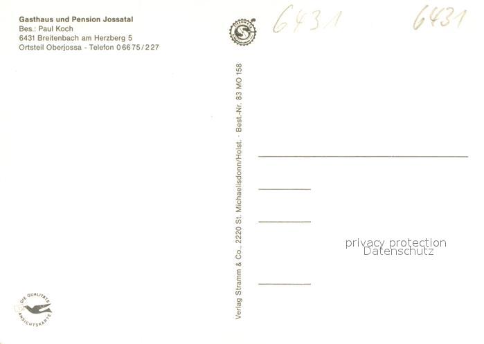 73648899 Breitenbach Herzberg Gasthaus Pension Jossatal Gastraum Fremdenzimmer postalisch nicht gelaufen Erhaltung siehe scans [FriedD77] KatCode: 11110006632004