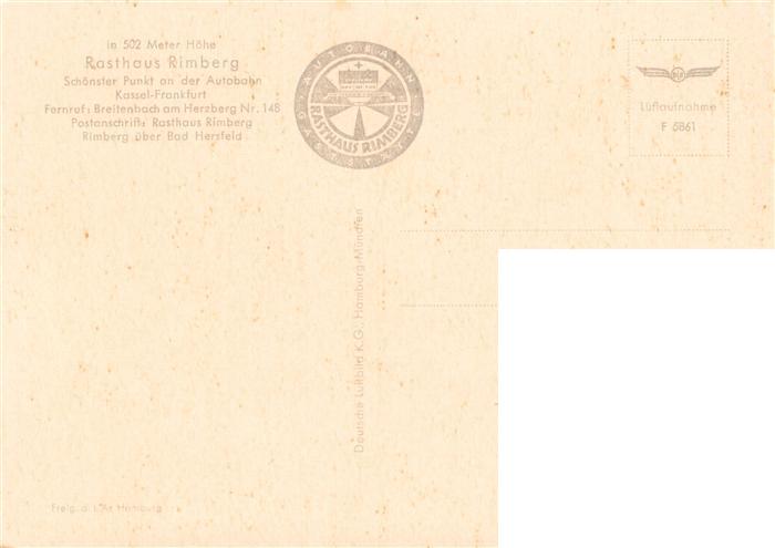 73872207 Breitenbach Herzberg Rasthaus Rimberg postalisch nicht gelaufen Fliegeraufnahme Erhaltung siehe scans [FriedD77] KatCode: 11110006632004