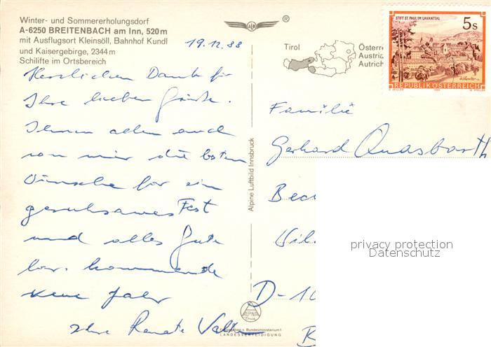 73049176 alte Postkarte Breitenbach Inn Fliegeraufnahme Winter postalisch gelaufen Erhaltung siehe scans [KathaD81] KatCode: 11390335070505