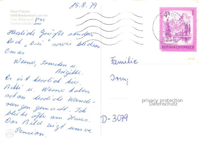 74109994 alte Postkarte Breitenbach Inn Tirol AT Haus Fischer postalisch gelaufen Erhaltung siehe scans [WerneD78] KatCode: 11390335070505
