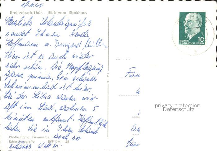 72385537 alte Postkarte Breitenbach St Kilian Blick vom Blockhaus postalisch gelaufen Erhaltung siehe scans KatCode: 11110016069048