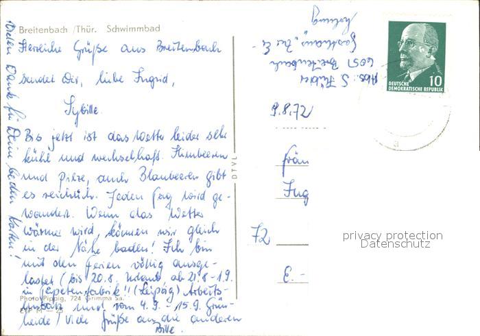 72010685 alte Postkarte Breitenbach St Kilian Schwimmbad postalisch gelaufen Erhaltung siehe scans KatCode: 11110016069048