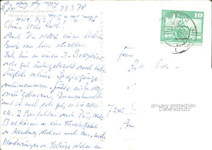 72067269 alte Postkarte Breitenbach Zeitz Genesungsheim Otto Diehr postalisch gelaufen Erhaltung siehe scans KatCode: 11110015084045